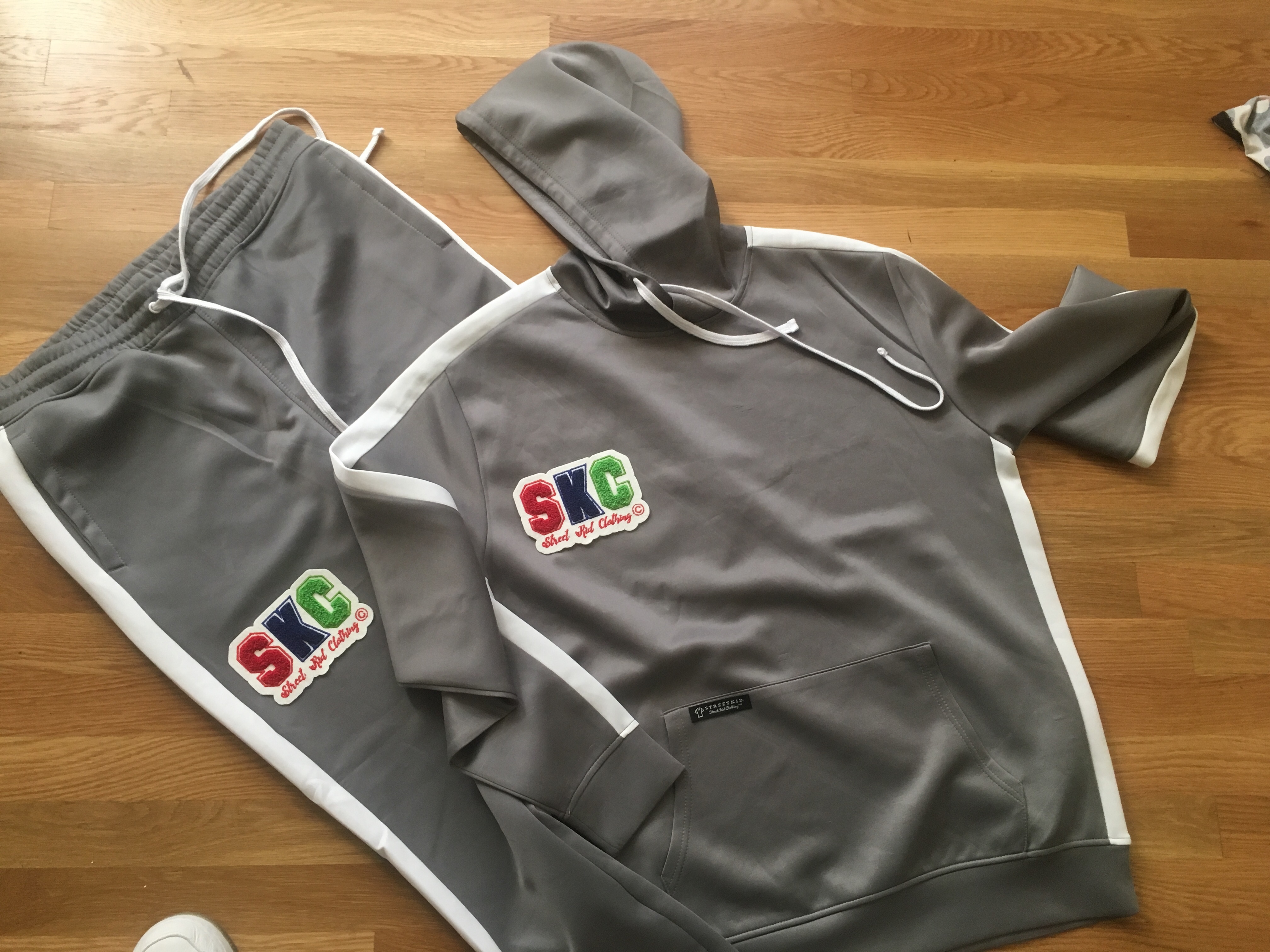 SKC chenille patch hoodie track suit